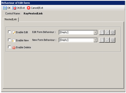 The next step is to define the Form Control Behavior for the Nested Form Link