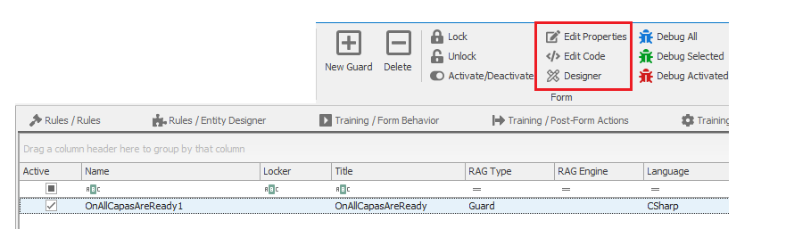 After defining a Guard, you can Save it and then the Guard will be added to the List To edit a guard, select it and click on edit in the toolbar.