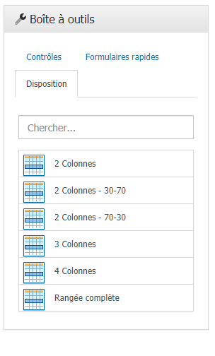 L’onglet Disposition permet aux utilisateurs de concevoir la mise en page de l’application Web en faisant glisser et en déposant des colonnes sur le canevas de conception
