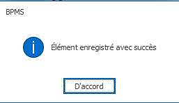 Un message de confirmation apparaît lorsque l’utilisateur enregistre un élément.