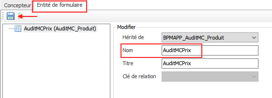 Dans le concepteur de formulaires, modifiez le nom et appuyez sur le bouton « Enregistrer »