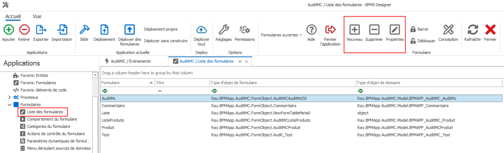 1. Sélectionnez Liste des formulaires sous le module Formulaires défini dans l’arborescence Applications