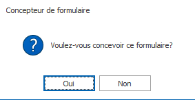 Si l’utilisateur choisit « Non », le nouveau formulaire s’ouvre en mode conception, sans aucun attribut par défaut.