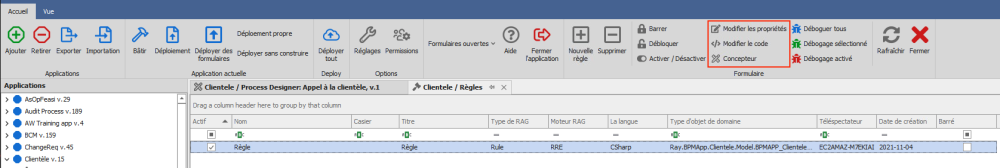 Modifier les propriétés : Les propriétés de la règle peuvent être modifiées