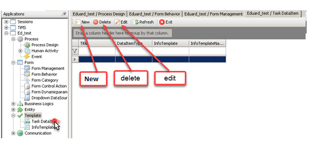 1.Select the “Template” in the Open Application tree and Click New, Edit, or Delete (as shown below).