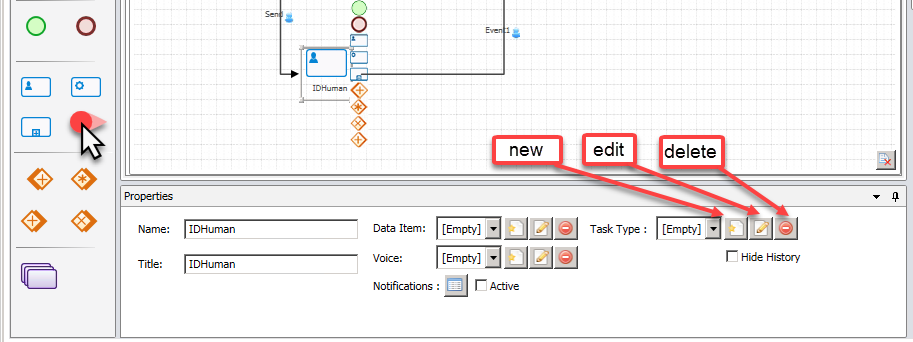 2. Select one of the human, system, sub-process, in the process diagram section, and then