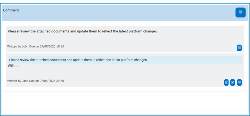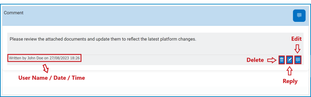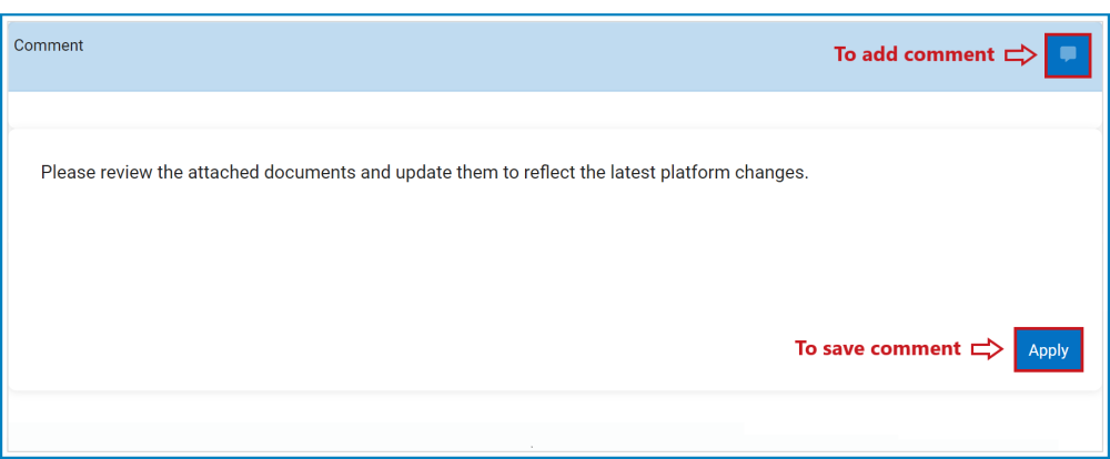 icon in the top right corner, input your comment(s) in the text field, and then click on the Apply button to save your work.