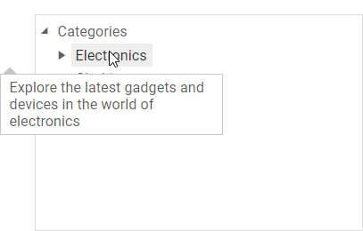 - Tooltip: This is a single-select dropdown field that retrieves the list of attributes available in the associated entity. It allows users to select the attribute that will provide additional contextual information when users hover over or interact with specific nodes in the tree control.