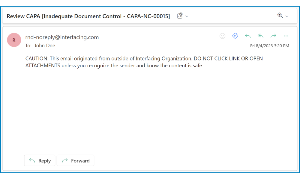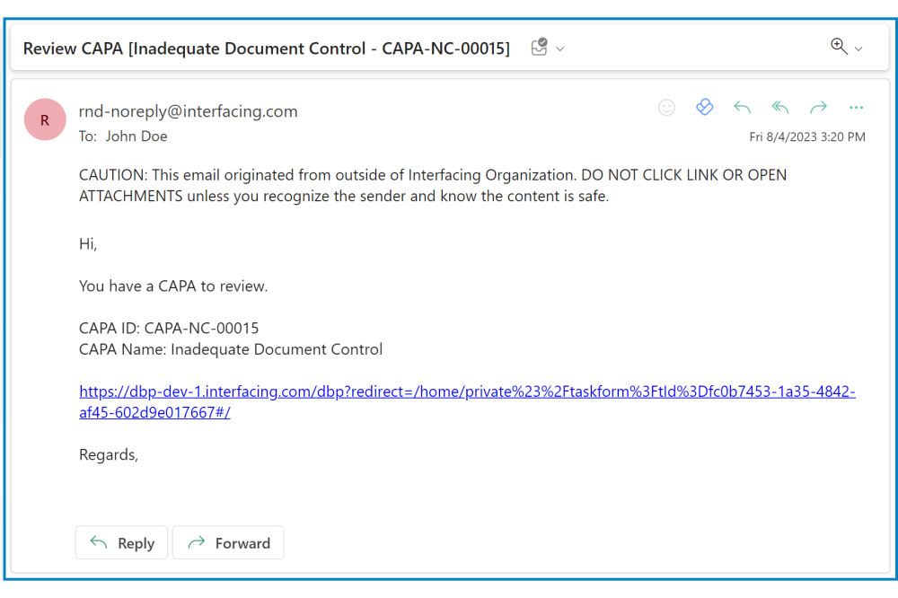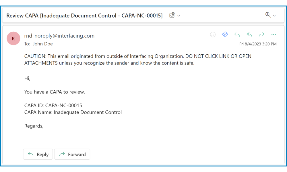 - Email: Review CAPA [Inadequate Document Control – CAPA-NC-00015]