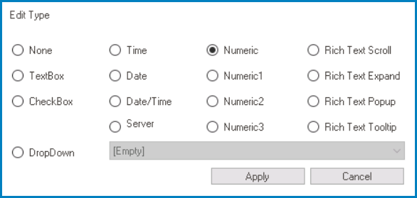 - For more information on the numeric textbox display options, please click here and navigate to the Format section.