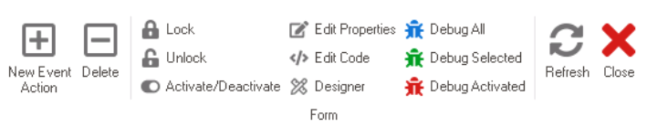 - Debug Selected: This button allows users to debug only the selected event action in the list.