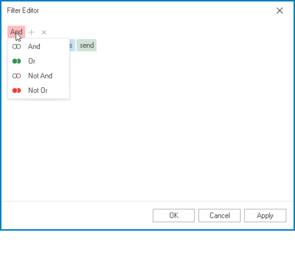 - To remove conditions and/or groups, click on the x button or press the Delete or Subtract key.