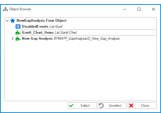 - Attribute: This field allows users to select the attribute associated to the Gantt chart control.