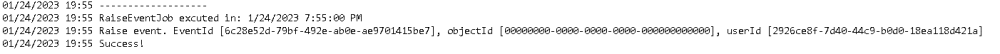 When a scheduled event is triggered, the Scheduler calls the DBP web server to execute the event (or task), and a new record is added to the BpmsSchedulerWindowsServiceLog.txt file.