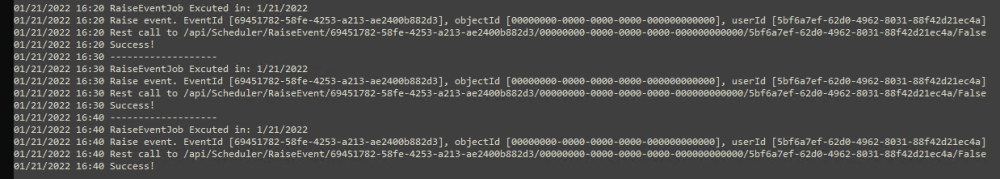 The Scheduler notifies all executions in the log file BpmsSchedulerWindowsServiceLog.txt