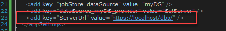 The Execute method extracts the ServerURL parameter from the BPMSSchedulerWindowsService.exe.config file to get the base BPMS address (default: https://localhost/dbp/).