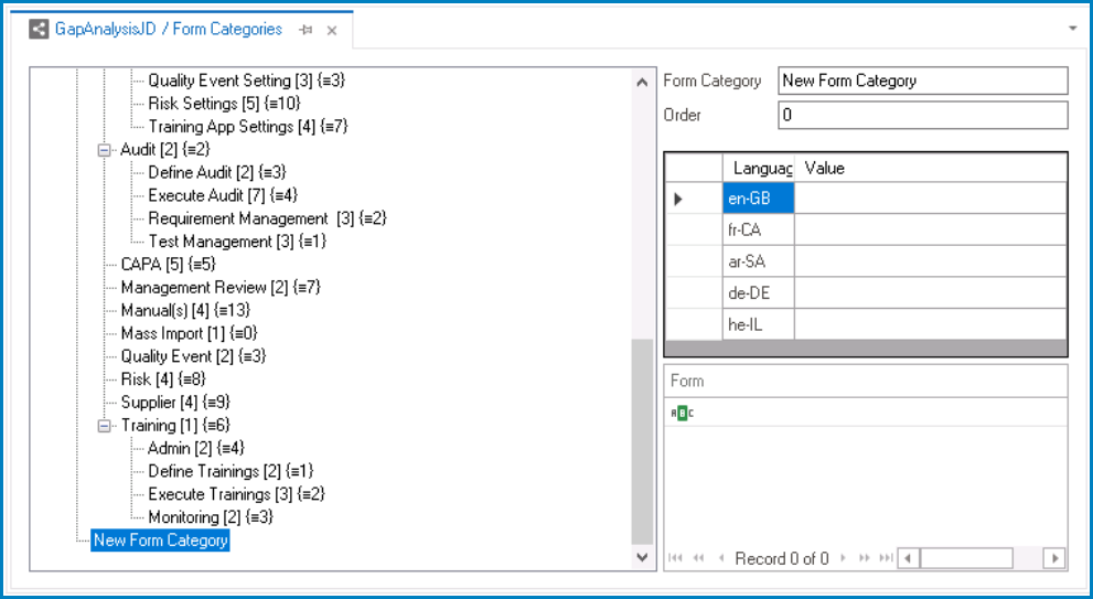 - By setting a value in this field, users can arrange the form categories and subcategories in the desired order, based on their workflow or organizational needs.