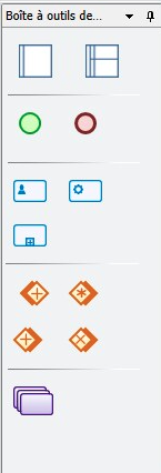 - Boîte à outils : la boîte à outils affiche les éléments/objets de flux pouvant être utilisés dans la conception de processus