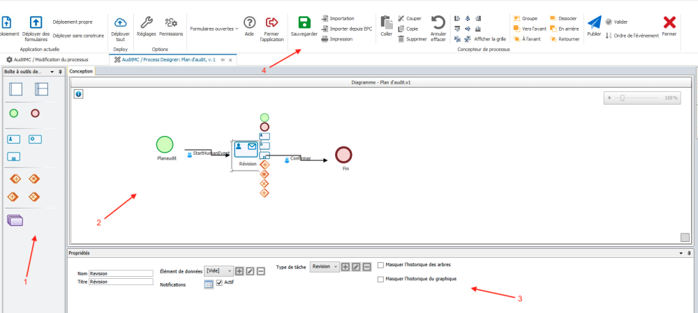 Les composants du Process Designer seront expliqués ci-dessous :