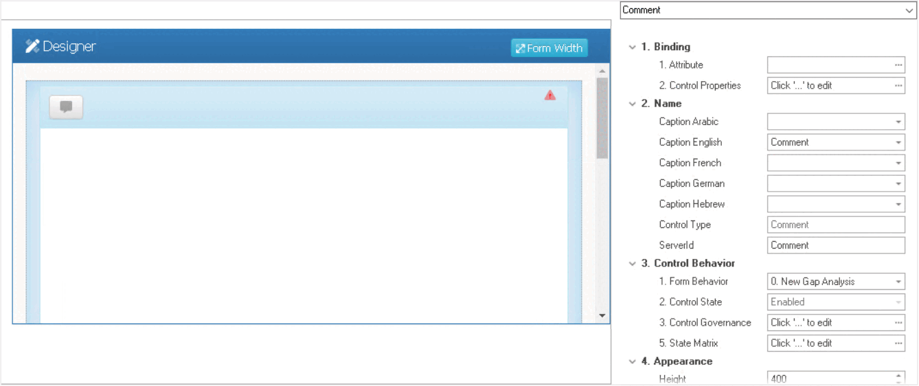 - Control Behavior: In this category, users can configure the behavior of the control and define how it interacts with the form or application.