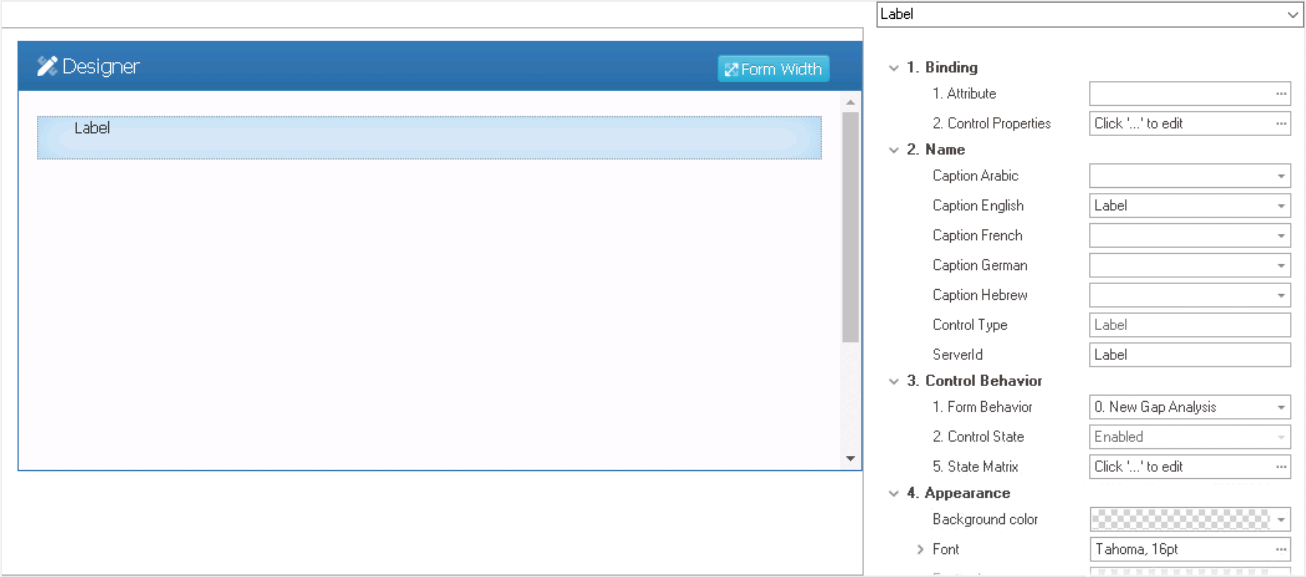 - Control Behavior: In this category, users can configure the behavior of the control and define how it interacts with the form or application.