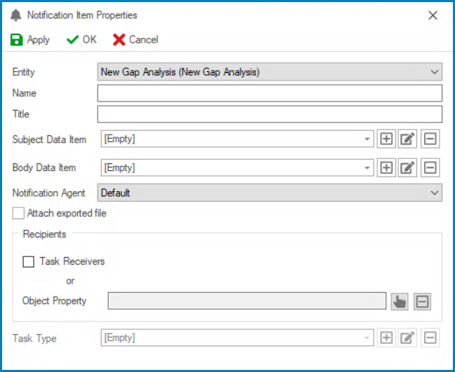 - Task List: This option allows users to send the notification as a new task instance to the assigned task type recipient.