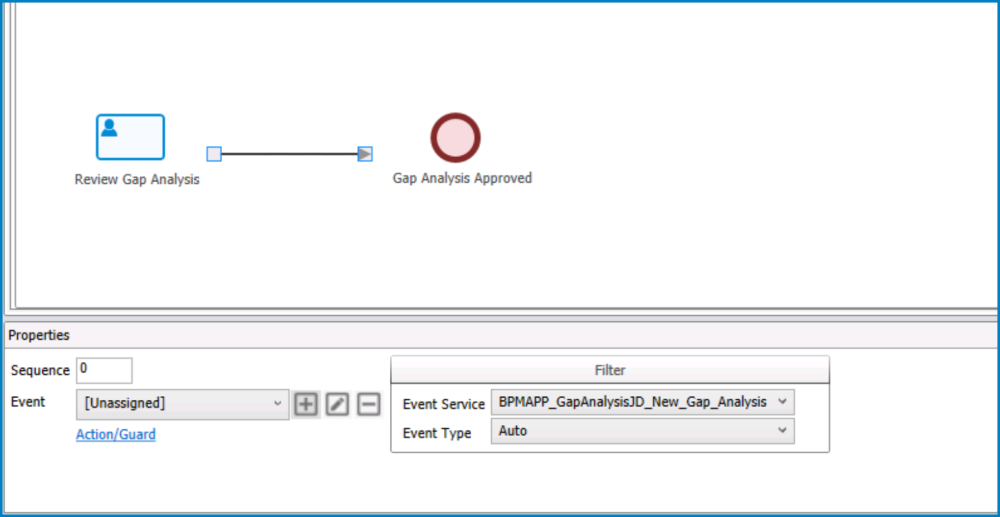 - Action / Guard: This is a hyperlink which, if selected, directs users to the Guard window, in which users can define new event actions and guards.