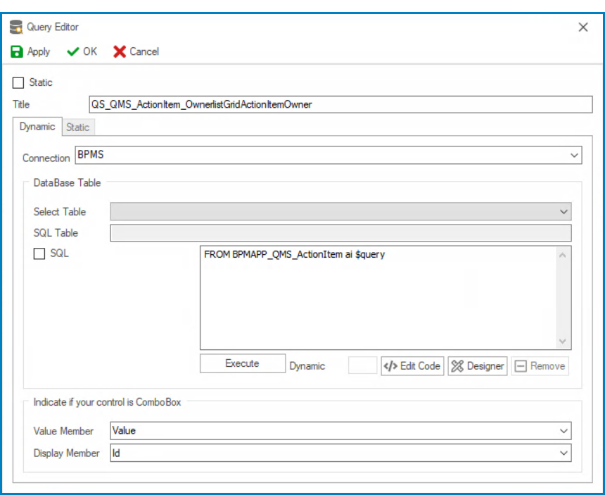 - In the Query Editor window, define the base query for the grid.