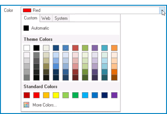 - In the Web tab, users can select a font color from a scrollable list. The list displays a range of specific colors, each with its own name, allowing users to easily choose from pre-defined options.