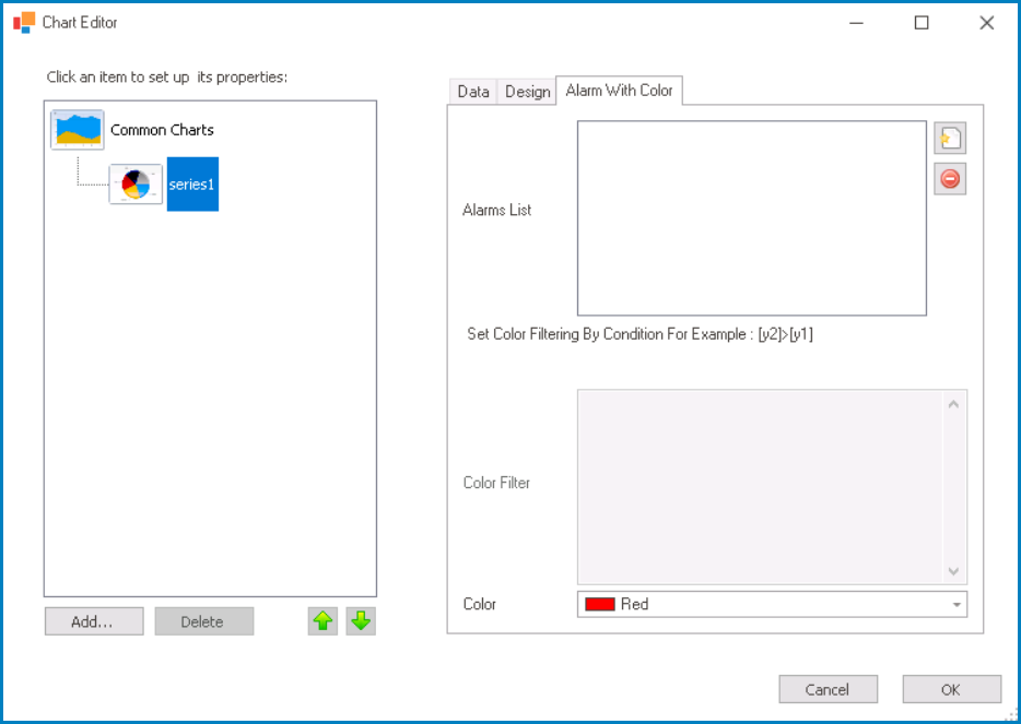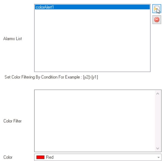 - Alarms List: This field allows users to manage the color alarms for the chart.