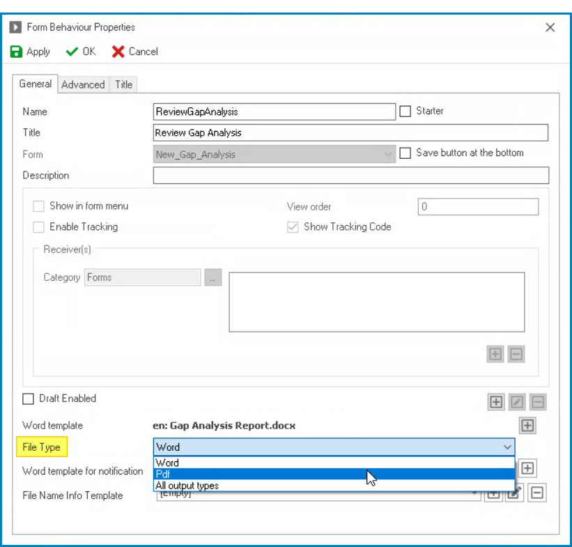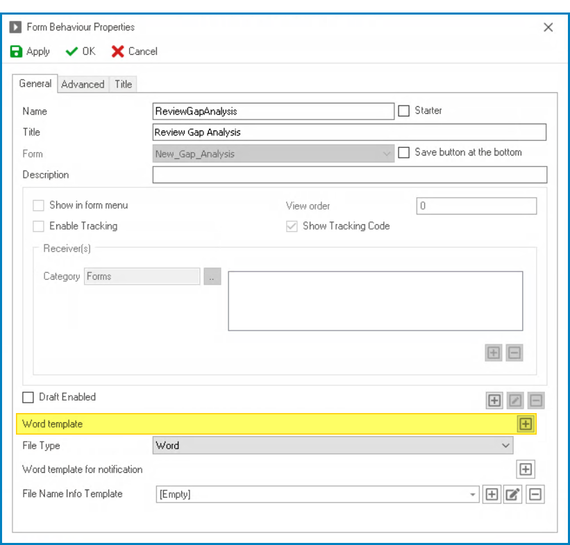 - Navigate to Forms > Form Behavior (double-click to open). This will display the Form Behavior tab.
