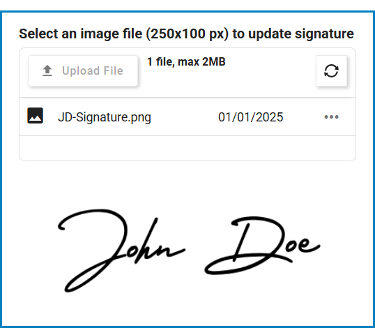 - These uploaded images will be used to display the users’ signatures in the generated PDF files.