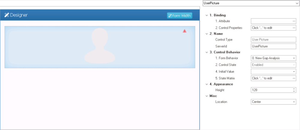 - An option for the user picture control is to set the initial value to the current user’s picture. This means that when the form is opened, the control will automatically display the picture for the user associated with the current session.