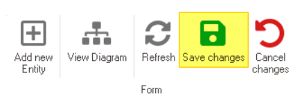- From the Application Tree, navigate to Entities > Entity Designer (double-click to open). It will display the Entity Designer tab and expand the menu bar to show additional options.
