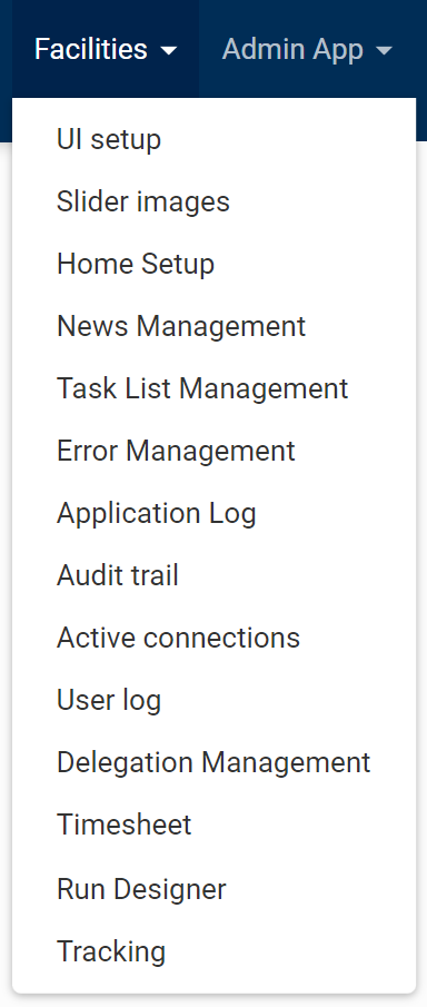 In the Facilities menu, users are provided access to the following forms: