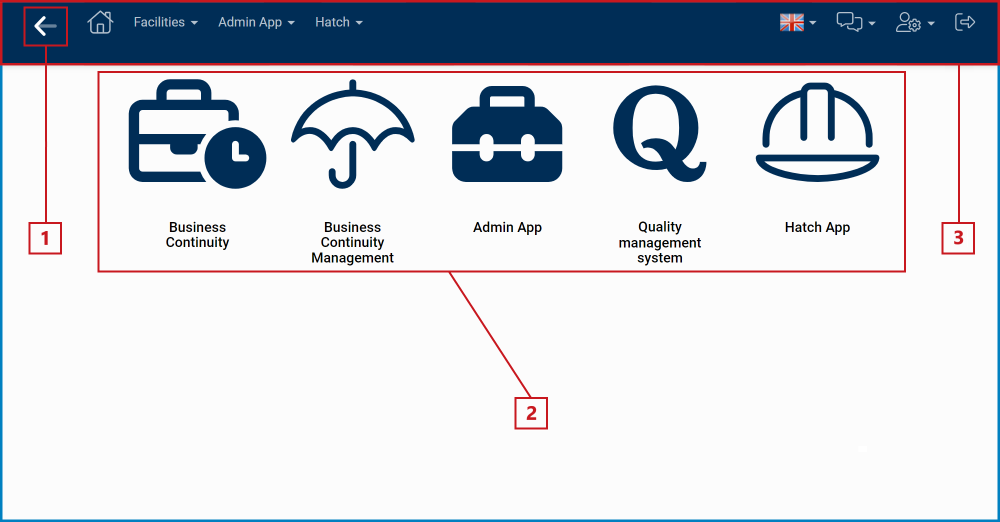 | 2 | Applications | Applications that have been designed and deployed to the web server can be accessed from either the home page or the menu bar. |