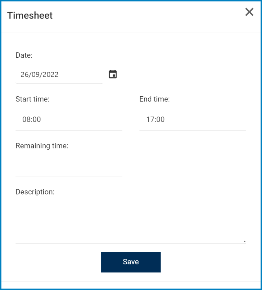 - Remaining Time: This is a numeric field that allows users to input the remaining time—that is, the time remaining to complete the task.