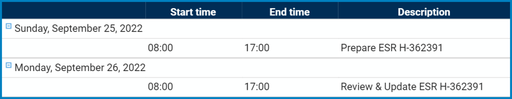 - It will populate the Timesheet grid in the following fashion:
