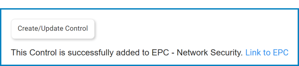 - Once completed, a confirmation message will appear, indicating that the control has been successfully added or updated in the specified EPC folder.