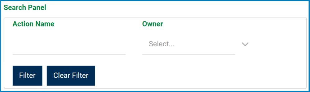 - Owner: This is a single-select dropdown field that allows users to select the owner of the action. It allows users to select only one value at a time from the dropdown.