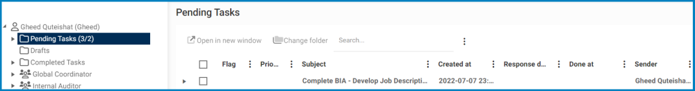 Once the BIA has been submitted, the assigned user will receive a notification in their Pending Tasks informing them that they need to complete the BIA.