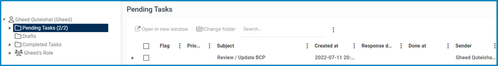 Once the BCP has been submitted, the manager/assigned reviewer will receive a notification in their Pending Tasks informing them that they need to review/update the BCP.
