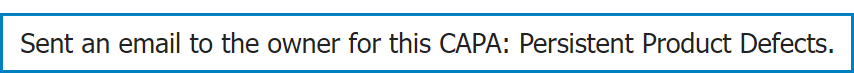 - For each CAPA, an email is sent to the assigned task resource, providing details about the CAPA and a reminder of its impending due date.