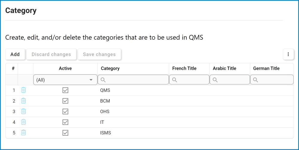 - Add: This button allows users to add a new category.