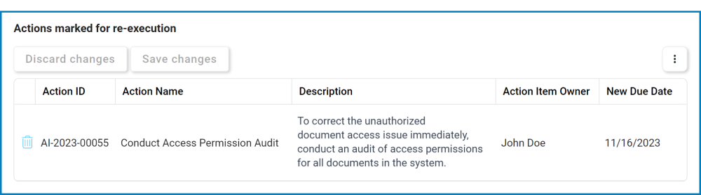 - Mark Selected Action For Re-Execution: This button allows users to mark the selected action item(s) for re-execution.