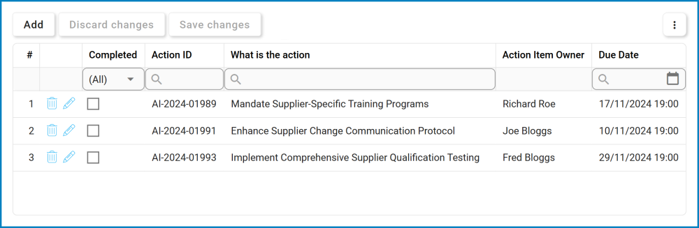In this section of the Assess and Treat Vigilance Record form, users can define actions aimed at addressing and resolving identified issues.