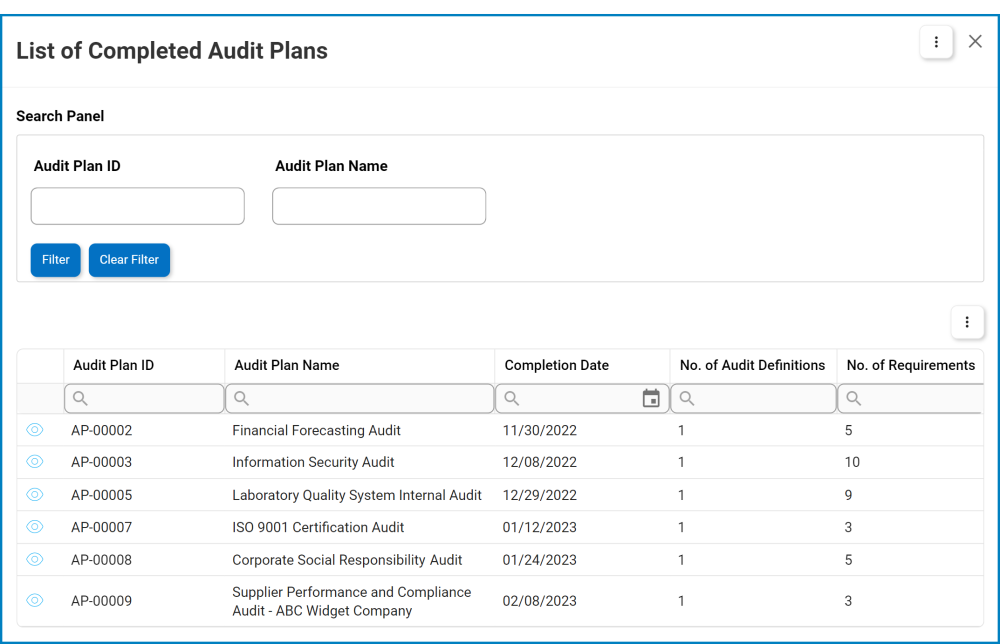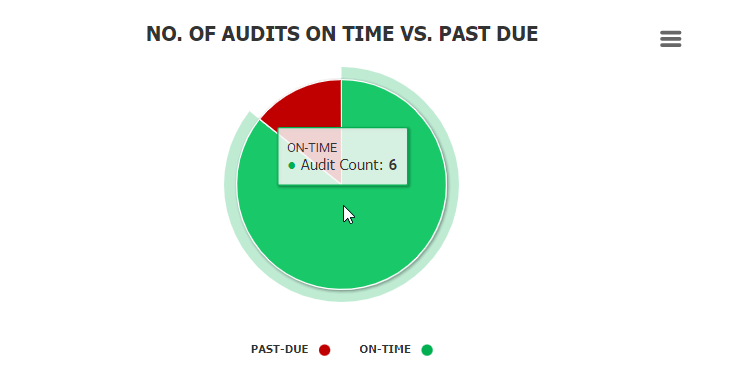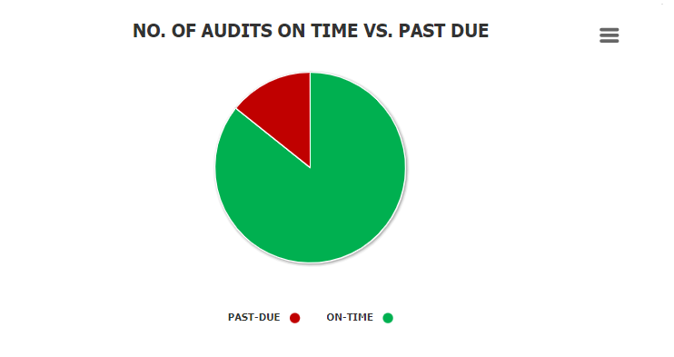 - For example, double-clicking the sector of the pie chart representing audits that have been completed on time reveals the following modal window: