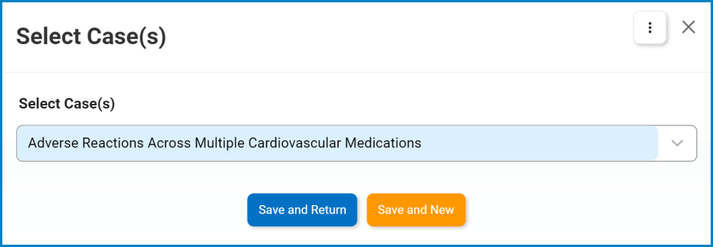 - Save and New: This button allows users to save the case selection and open a new window to make another selection.