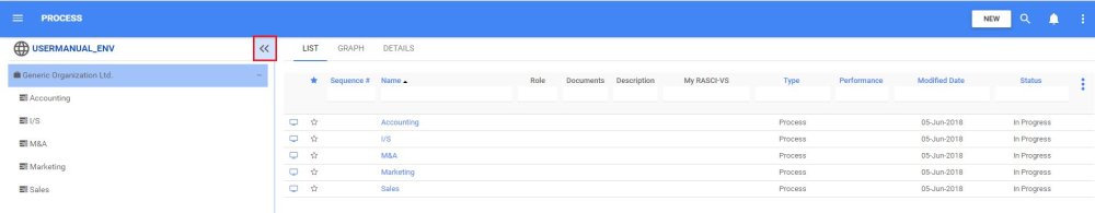For this example we will use the Process Module. Note that Navigation is all modules mirrors the following instructions.