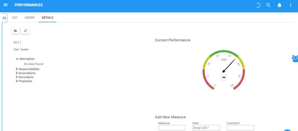 2. On the details page: Allows user to view and input performance into graphs. For further details on inputting performance measure, please see the steps below.